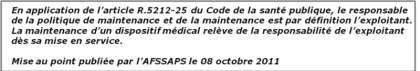 La politique de maintenance est définie pour chaque appareil en accord avec l’établissement :